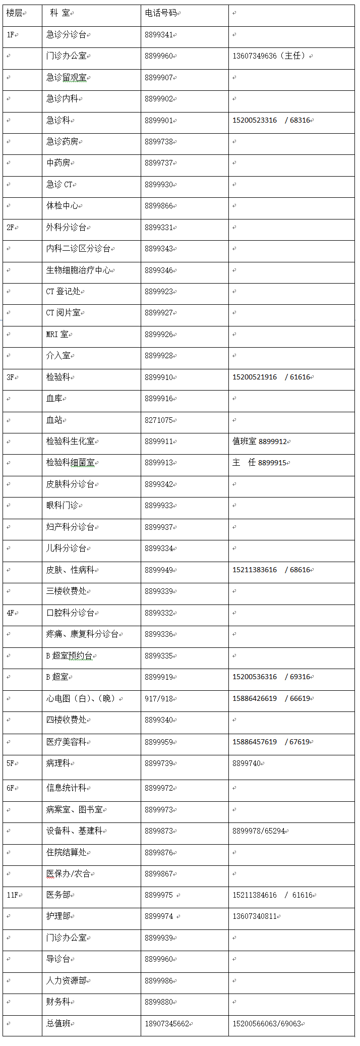 南华大学附属第二医院科室电话