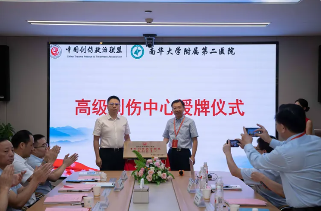 22日上午南华大学附属第二医院高级创伤中心创建验收评估会顺利进行,专家们听取了创伤中心行政主任刘文捷院长关于我院创伤中心建设情况汇报、查阅申报资料及创伤病例资料、现场核查建设情况、观摩院前预警及演练。专家讨论后宣布我院创伤中心高分通过验收评估并授牌,由北大人民医院王天兵副院长和南华附二刘文捷院长共同点亮百度地图标识。