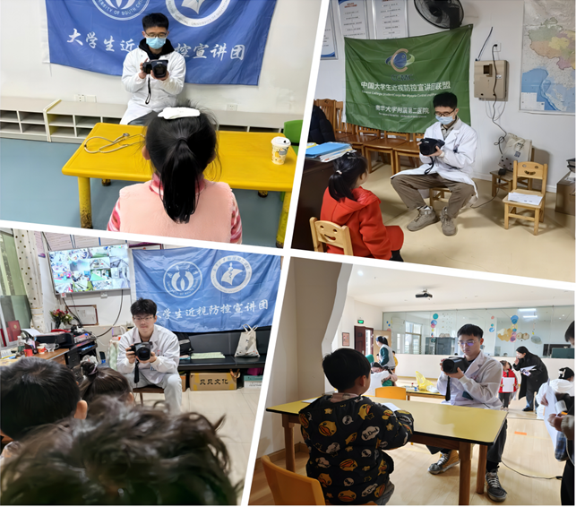 图 2南华大学附属第二医院眼科硕士研究生邓旭杰正在为小朋友进行爱眼护眼科普宣讲