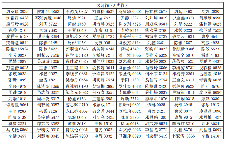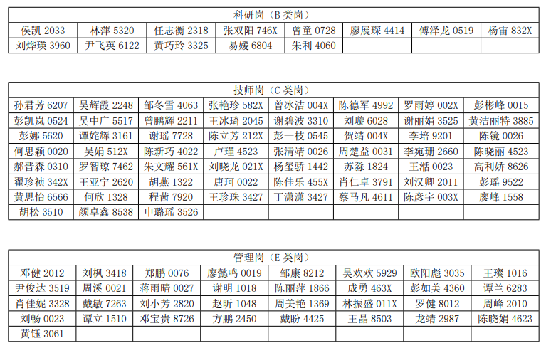 附:南华大学附属第二医院2022年公开招聘非事业编人员第一轮初步资格审查合格人员名单(A、B、C、E岗)