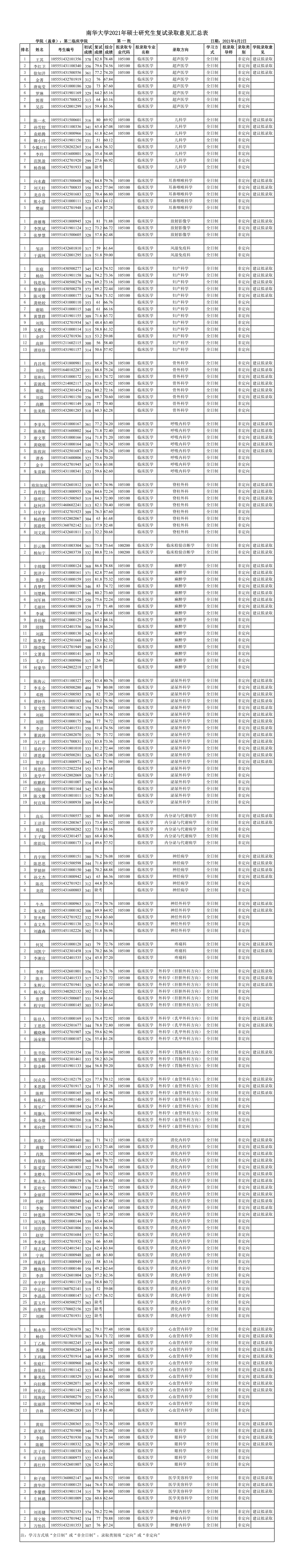 上一篇:南华大学第二临床学院2021年硕士研究生第一志愿复试名单公示 下一篇:南华大学第二临床学院2021年硕士研究生复试录取意见公示(第一批调剂)