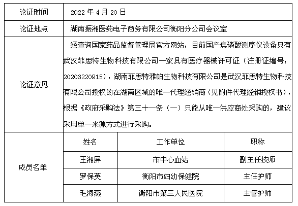 本次拟采购的焦磷酸测序仪设备在国内仅有武汉菲思特生物科技有限公司具有医疗器械许可证,湖南菲思特雅帕生物科技有限公司是其在湖南区域的唯一授权代理商。拟采购产品具有唯一性,项目采购具有唯一性。