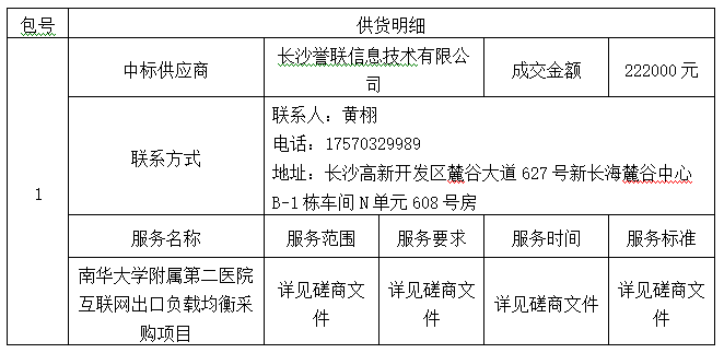 南华大学附属第二医院互联网出口负载均衡采购项目中标(成交)公告
