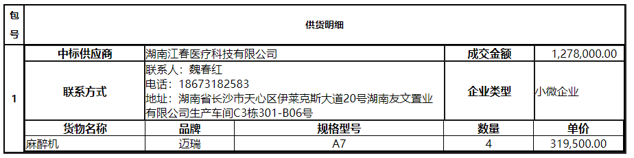 南华大学附属第二医院麻醉机采购项目中标(成交)公告