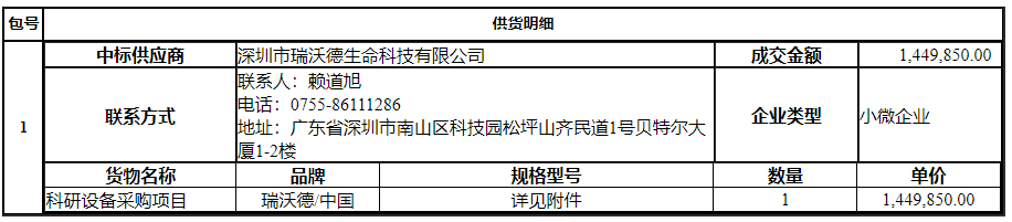 南华大学附属第二医院科研设备采购项目中标(成交)公告