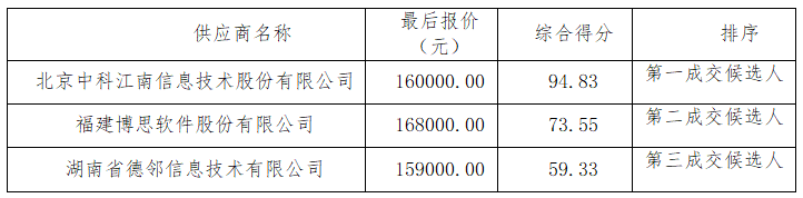 成交供应商名称:北京中科江南信息技术股份有限公司