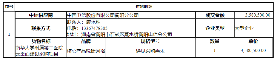 南华大学附属第二医院云桌面建设项目中标(成交)公告