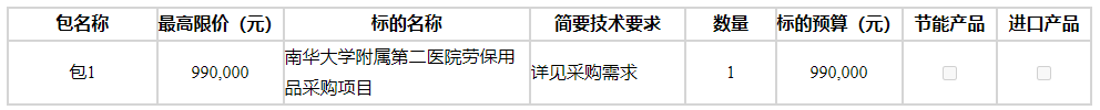 南华大学附属第二医院劳保用品采购 项目公开招标公告