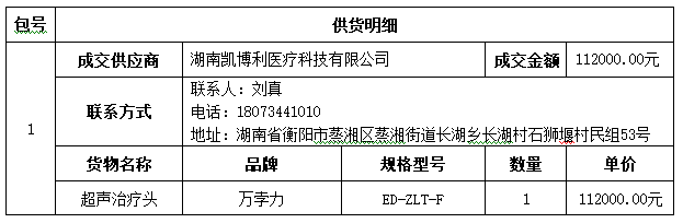 南华大学附属第二医院超声治疗头采购项目成交公告