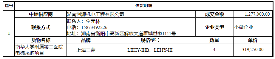 南华大学附属第二医院电梯采购项目中标(成交)公告