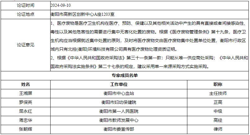 根据国务院《医疗废物管理条例》等相关文件的规定,以及医疗废物就近集中处置原则,目前衡阳市行政区域内只有北控(衡阳)环境科技有限公司具有医疗废物处理资质证明,只能从唯一供应商处采购。。