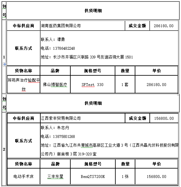南华大学附属第二医院2024年医疗设备第四批采购项目中标公告