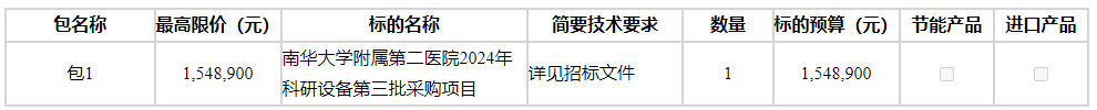 南华大学附属第二医院2024年科研设备第三批采购项目公开招标公告