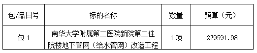 1、采购项目名称:南华大学附属第二医院新院第二住院楼地下管网(给水管网)改造工程
