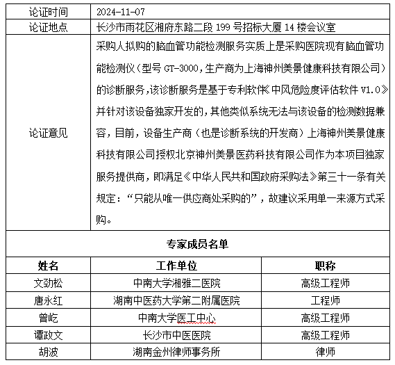 南华大学附属第二医院脑血管功能检测服务采购项目单一来源采购公示