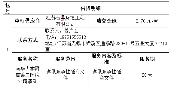 南华大学附属第二医院外墙清洗竞争性磋商中标公告