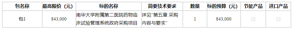 南华大学附属第二医院药物临床试验管理系统采购项目公开招标公告
