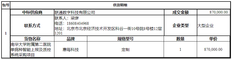 南华大学附属第二医院单病种智能上报及质控系统采购项目中标(成交)公告