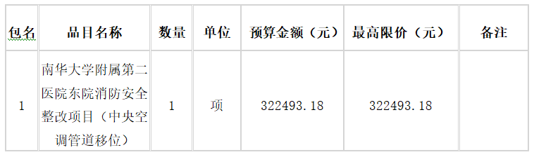 项目名称:南华大学附属第二医院东院消防安全整改项目(中央空调管道移位)