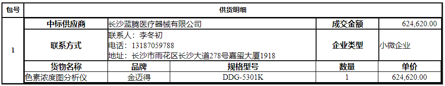 南华大学附属第二医院的南华大学附属第二医院肝功能储备分析仪采购项目重新立项公开招标采购项目于2025年02月13日结束,现将中标(成交)结果公告如下: