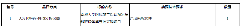 南华大学附属第二医院的南华大学附属第二医院2024年科研设备第五批采购项目公开招标采购项目于2025年02月11日结束,现将中标(成交)结果公告如下: