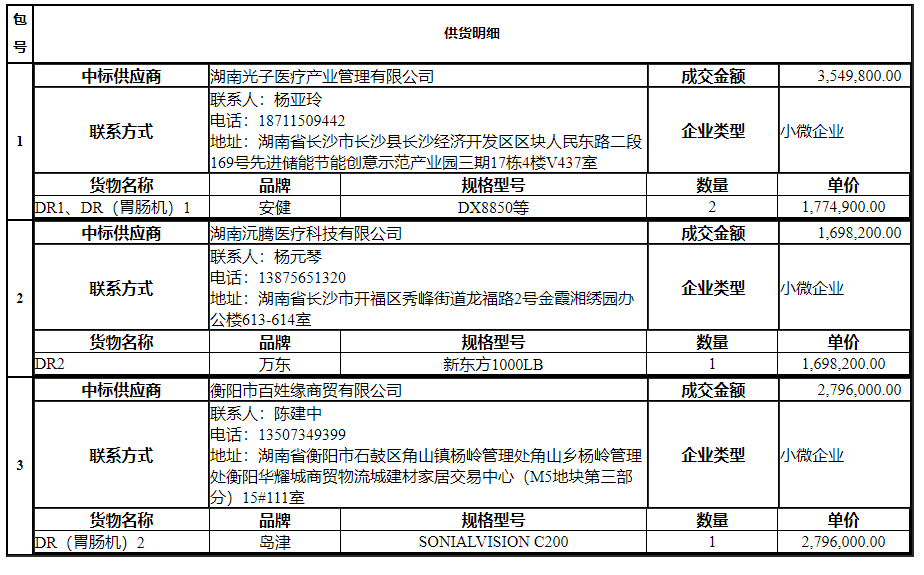 南华大学附属第二医院DR一批采购项目中标(成交)公告