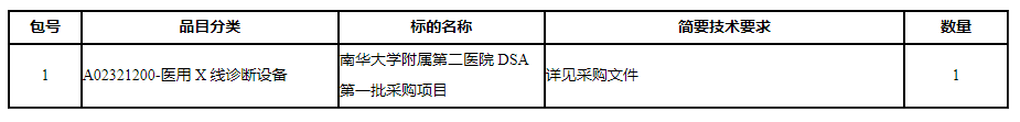 采购项目名称:南华大学附属第二医院 DSA第一批采购项目