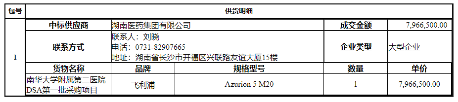 南华大学附属第二医院DSA第一批采购项目中标(成交)公告