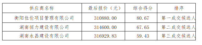 成交供应商名称:衡阳佳伦项目管理有限公司