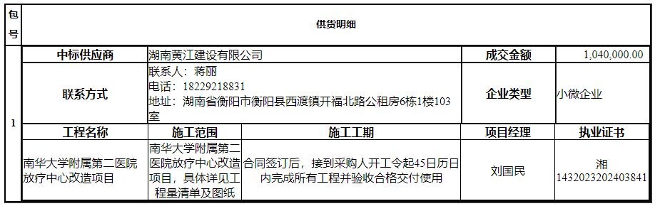 南华大学附属第二医院放疗中心改造项目中标(成交)公告
