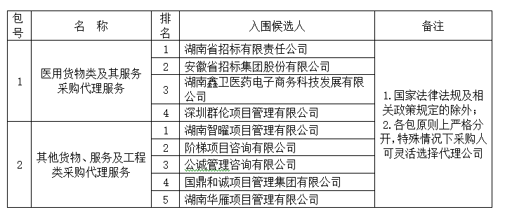 南华大学附属第二医院对承担货物、服务、工程等各类采购代理服务的采购代理机构进行院内公开遴选,现将该项目遴选结果公告如下:
