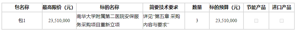 南华大学附属第二医院 的安保服务采购项目重新立项 进行公开招标采购,现邀请合格投标人参加投标。