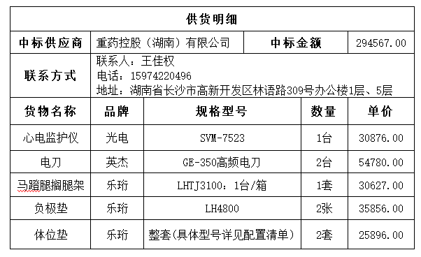 南华大学附属第二医院门诊手术设备一批采购项目中标公告