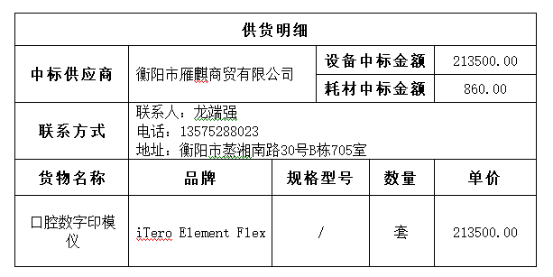 南华大学附属第二医院口腔数字印模仪采购项目中标公告