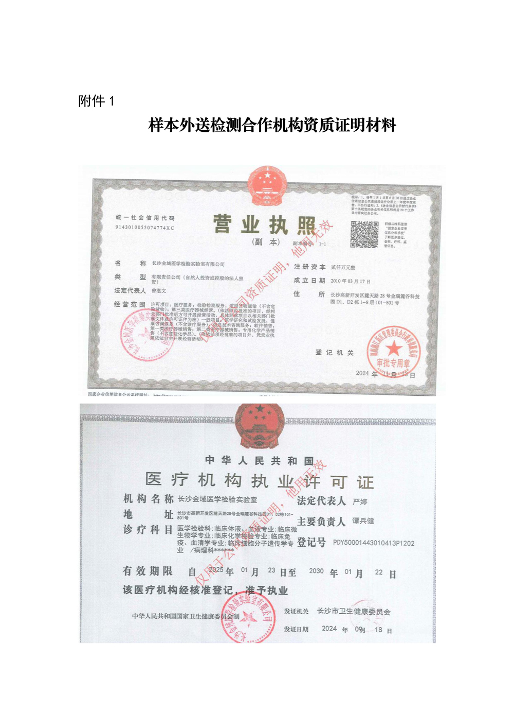 1.南华大学附属第二医院样本外送检测合作机构资质证明材料
