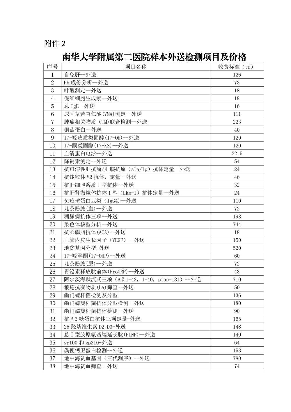 2.南华大学附属第二医院样本外送检测项目及价格