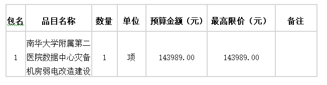 项目名称:南华大学附属第二医院数据中心灾备机房弱电改造建设项目