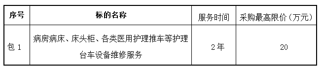 病房病床、床头柜、各类医用护理推车等护理台车设备维修服务项目招标公告