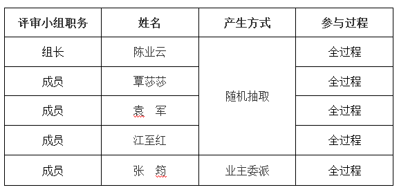 五、评审小组成员名单