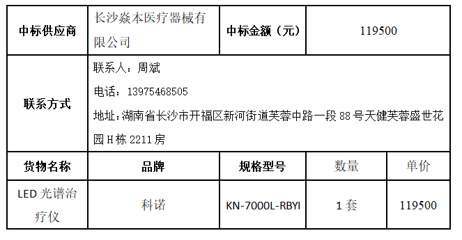 南华大学附属第二医院LED光谱治疗仪采购项目中标公告