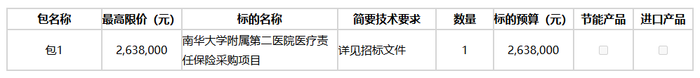 南华大学附属第二医院医疗责任保险采购项目公开招标公告