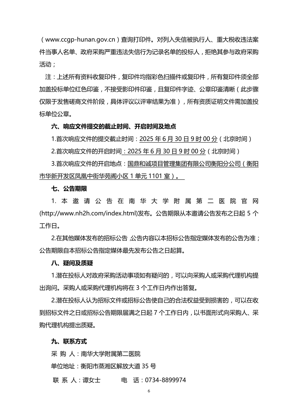 上一篇:南华大学附属第二医院免陪照护服务外包项目竞争性磋商邀请公告 下一篇:南华大学附属第二医院输液瓶贴类打印耗材采购项目重新立项项目公开招标公告