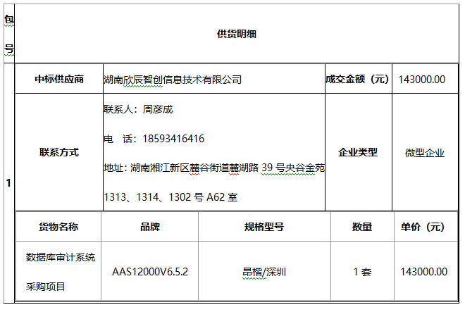 南华大学附属第二医院的衡数据库审计系统采购项目公开招标采购项目于2025年06月27日结束,现将中标(成交)结果公告如下:
