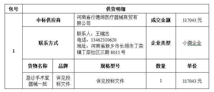 南华大学附属第二医院急诊手术室器械一批(三次)采购项目中标(成交)公告