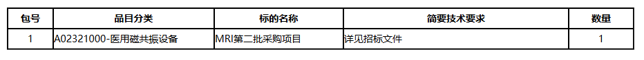 采购项目名称:南华大学附属第二医院 MRI第二批采购项目重新立项