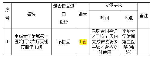 南华大学附属第二医院门诊大厅遮阳天棚帘制作采购项目院内竞争性谈判公告
