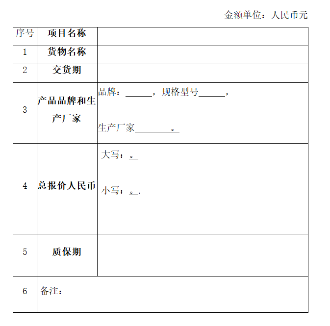 (7)报价一览表(格式见附件2)。
