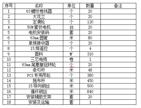 2、由中标人负责在采购人现场进行的整机安装、调试及试运行。安装为全包工程(包括运输卸车、预埋件等与天棚帘安全运行的全部工作)。