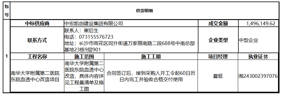南华大学附属第二医院东院血透中心改造项目中标(成交)公告