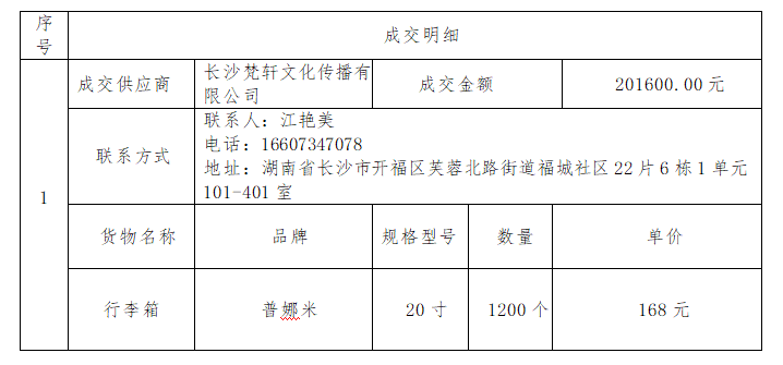 南华大学附属第二医院的医师节纪念品行李箱采购项目(第二次)于2025年8月22日结束,现将成交结果公告如下:
